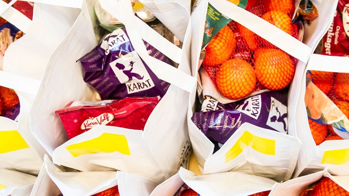 Uddeling af julehjælp i præstegården